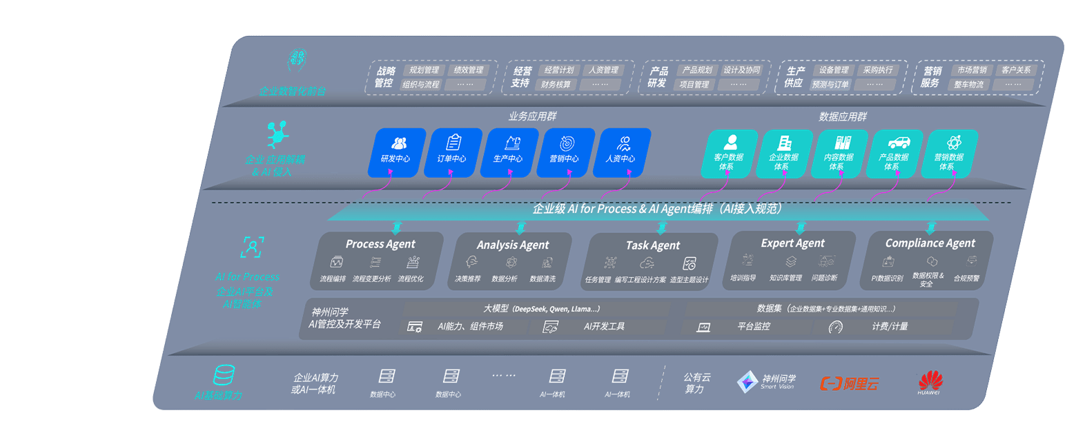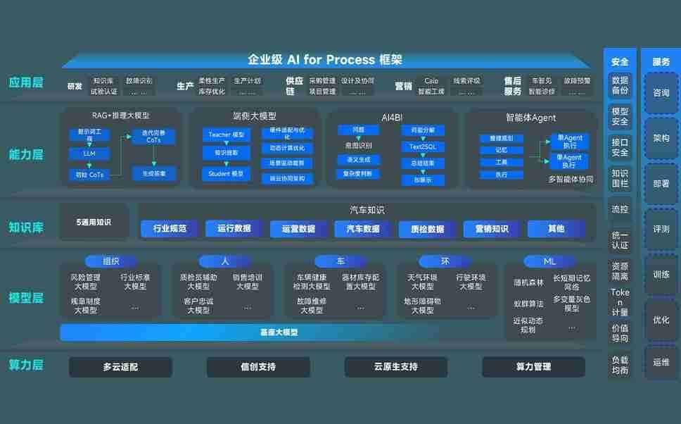 端到端的一站式AI工作空间深度融合了从企业战略规划到日常经营的全流程业务板块,,,定向解决车企内部领域多、、、部门多、、、、链条长、、、场景碎片化等难题,,,,支持车企快速构建以AI为核心的生产力写作体系,,,,实现任务执行与AI能力的无缝集成与交互
